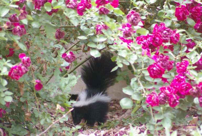 No one will suspect anything if I hide under a bunch of flowers in Eric's backyard