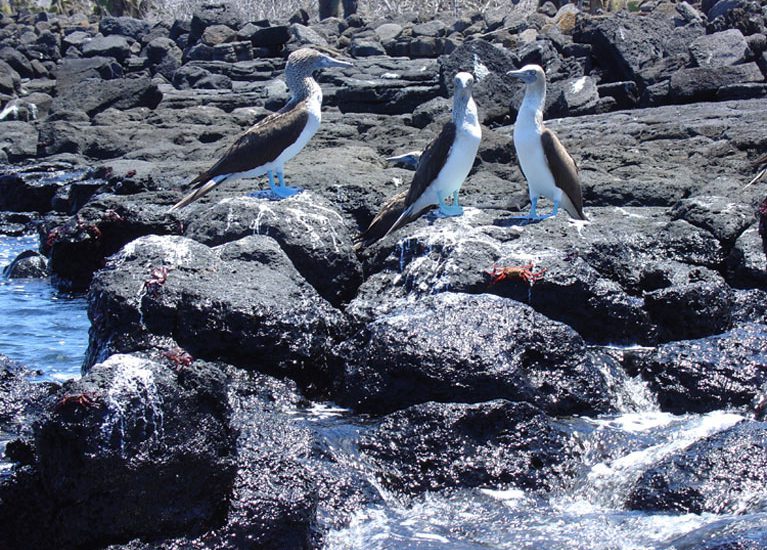 Larry, Mo and Curly? Blue Footed Boobies prepare to go hunting but, which way do we go?